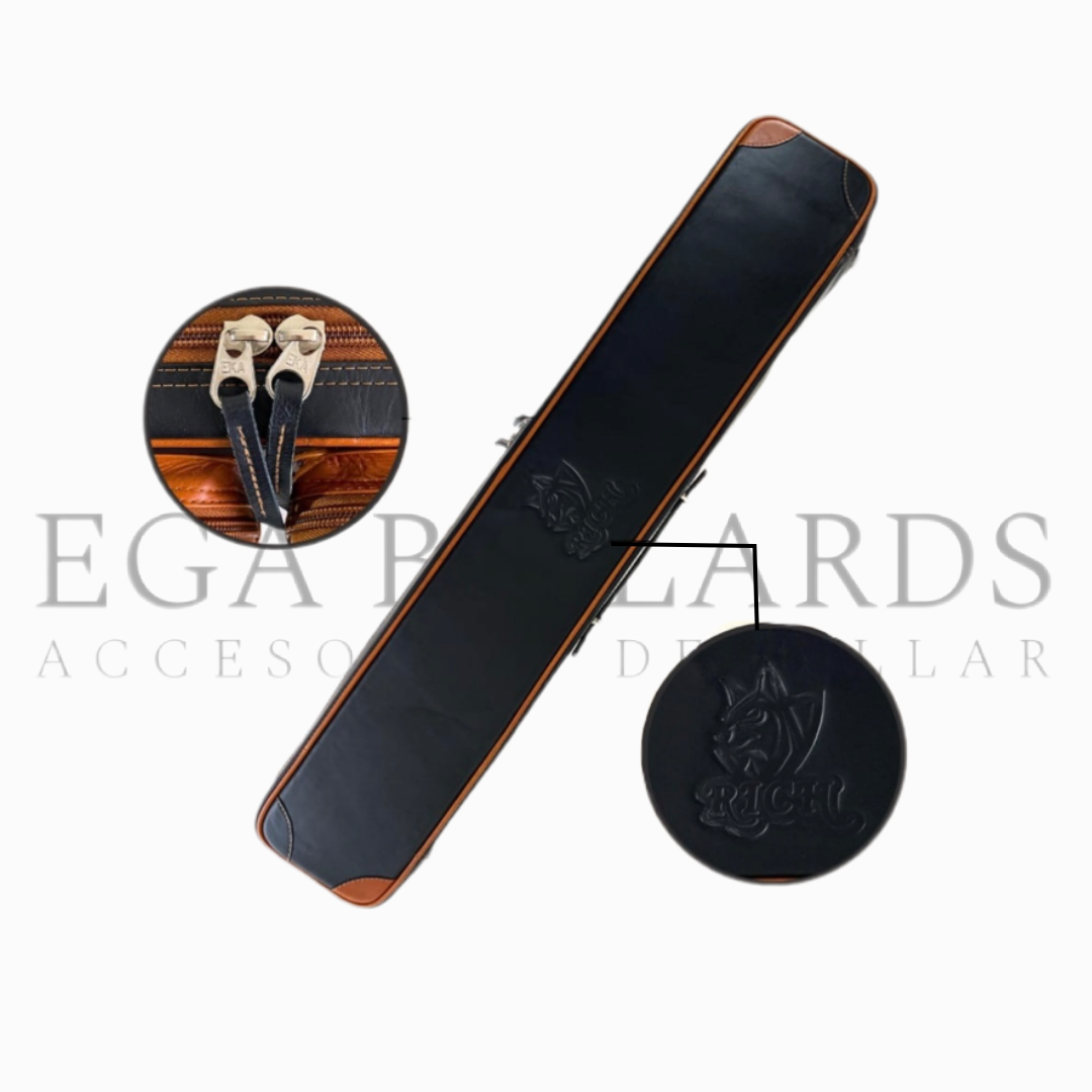 Eleva tu experiencia con el exclusivo Estuche RICH fabricado en cuero genuino de alta calidad. Este elegante accesorio no solo asegura la máxima protección para tu taco de billar sino que también destaca por su diseño sofisticado y funcionalidad superior.